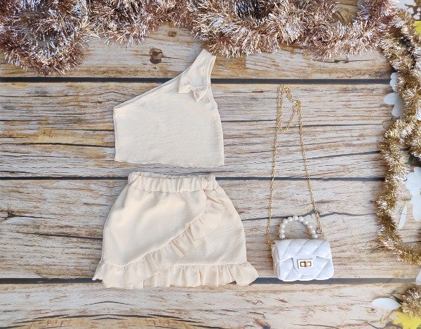 👉 De Lino Cey, conjunto de top y pollera. NO INCLUYE ACCESORIOS