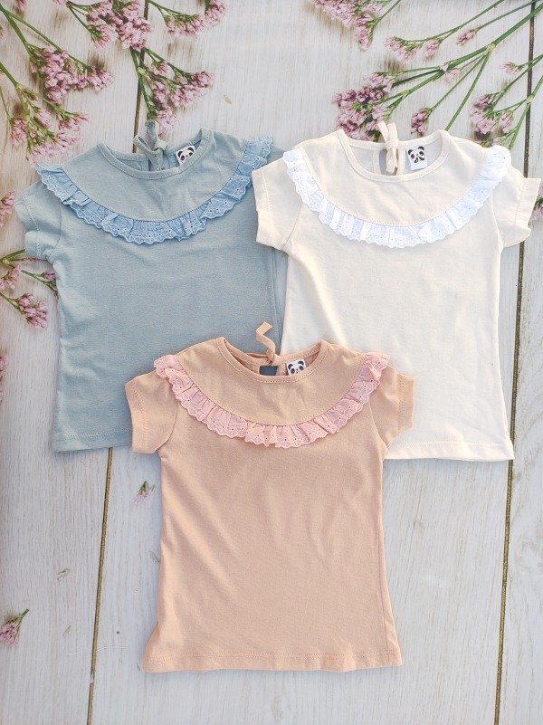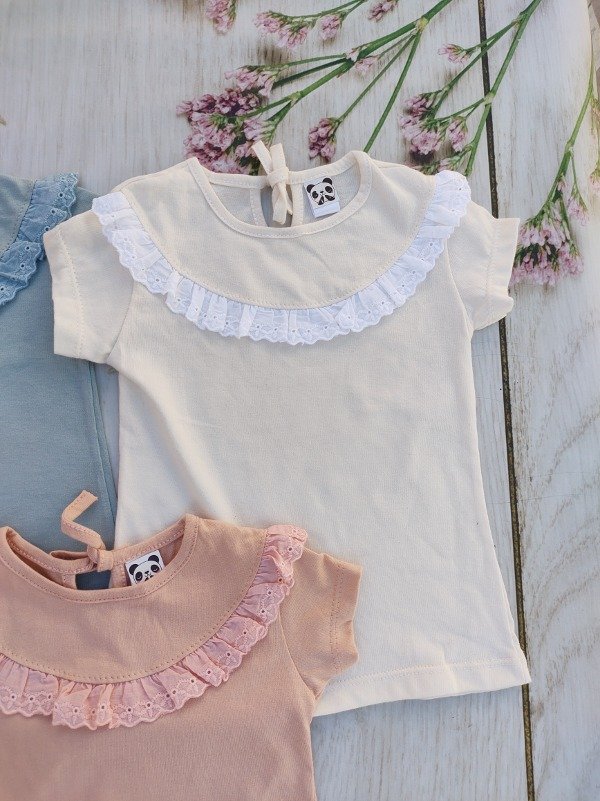 Remera de algodón con detalle de broderie