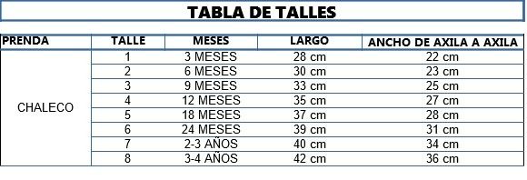 Los talles por edad son aproximados.